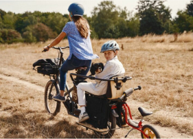 Market largest bike, up to 3 kids with the “rollercoaster”. And 2 kids in individual back seats with safety belts. Can even fit one child and one adult at the back (up to 170kg), or transport kids and groceries at the same time