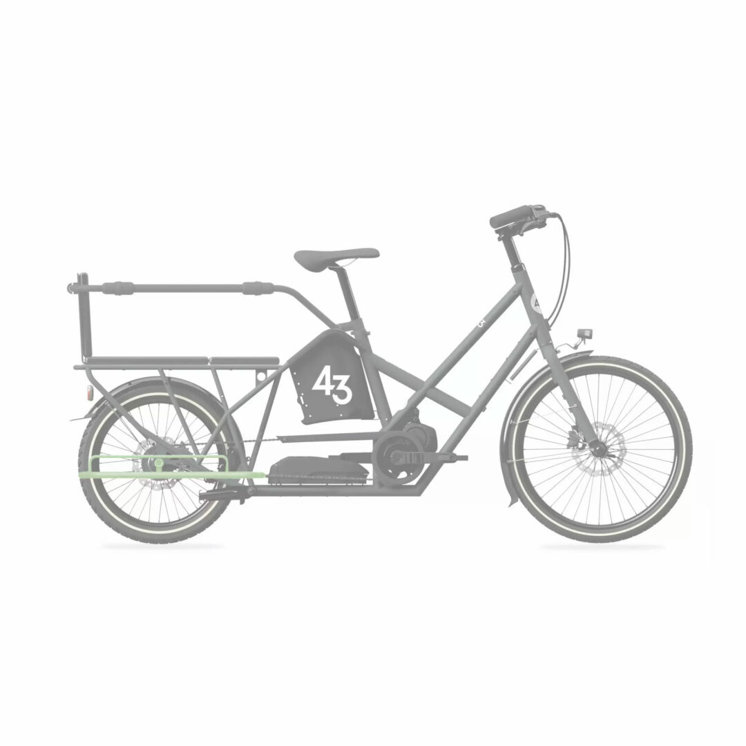 The Step In LC is a long platform for the back of the bike. It is either a footrest for the children seated at the back, or a deck for the bags.